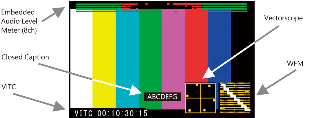 The 60 series Monitors support HDR (High Dynamic Range) EOTF tables of HLG1, HLG2 and S-Log3 as an option in addition to conventional Gamma.