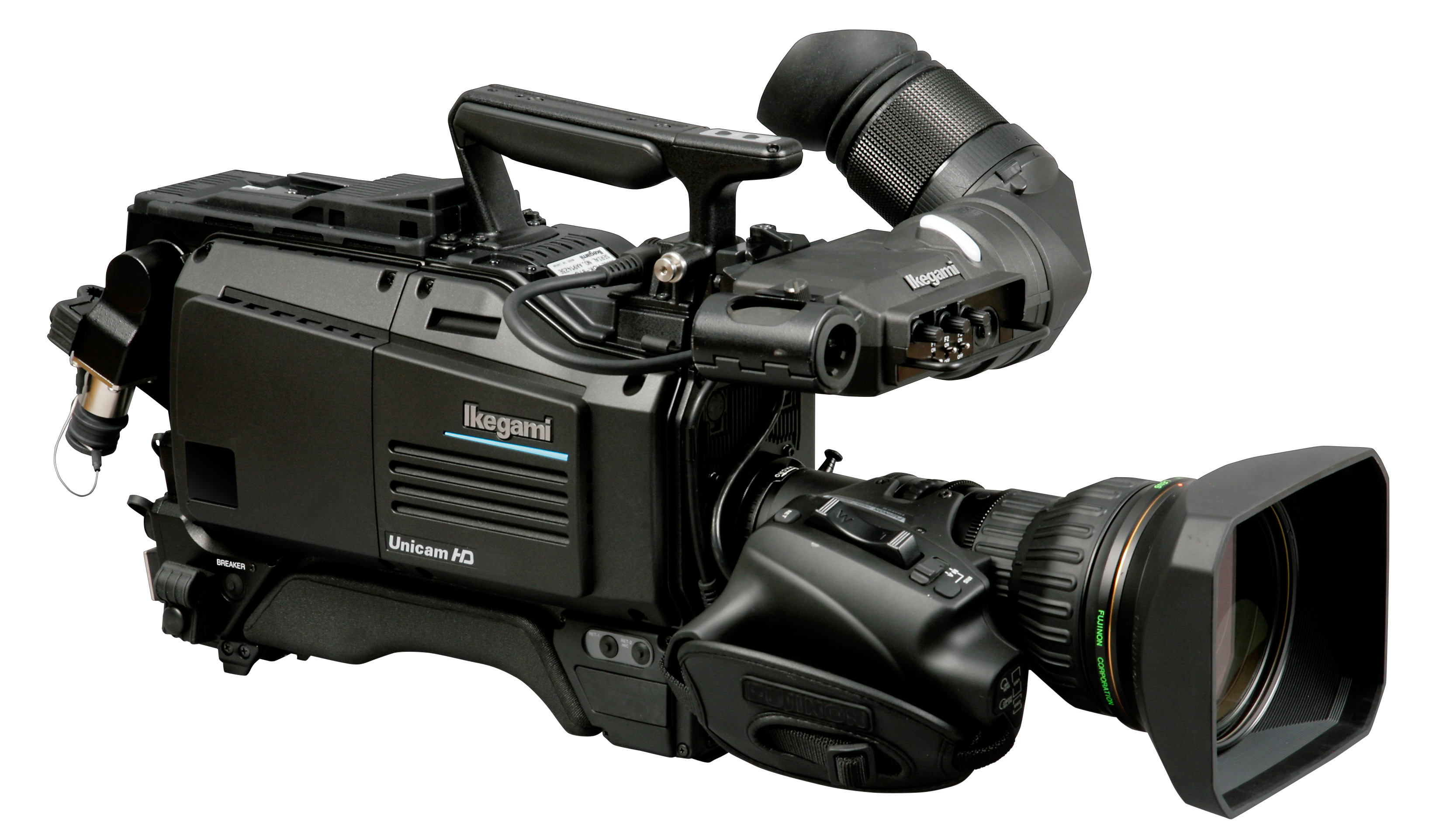 The Ikegami HDK-99 is a 3G-capable docking-style camera for portable and studio applications. It employs three 2.6-megapixel 2/3-inch CMOS image sensors delivering high picture quality in HDR at 1920 x 1080 resolution with progressive-scan. Like the UHK-430, the HDK-99 has an integrated Ikegami AXII processor. A lens aberration correction function minimises resolution loss and coloured edging caused mainly by optical lens deviation. Quick EZ Focus Assist enhances the viewfinder signal, enabling the camera operator to make critical focus adjustments. Area size, area colour, edge colour and display time on the viewfinder are all adjustable from the camera menu.