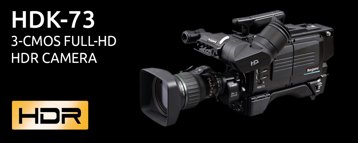 The HDK-73 is a dockable multi-role high-definition camera designed for standard-dynamic-range and HDR broadcast production. It is available as complete system including CCU, connecting fibre, viewfinder and remote control. Image capture is to 2/3-inch 2.6 megapixel CMOS sensors, each capable of 1920 x 1080 resolution images with an extremely wide dynamic range of 1,000% in HDR mode, high sensitivity (F13 at 50 Hz) and high signal-to-noise ratio. Major features include full digital signal processing, advanced digital detail correction with independent horizontal and vertical correction of red, green and blue signals, and optional anti-moiré filtering.